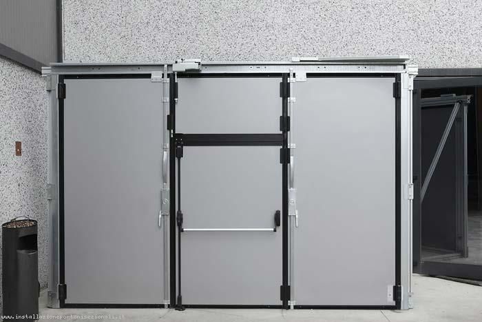 E’ la soluzione ottimale nel caso in cui si debba limitare gli sbalzi termici a tutela dei prodotti e del personale al lavoro. Ad un portone industriale, oltre al passaggio pedonale è possibile aggiungere altri accessori come delle finestre vetrate o plastificate o degli oblò a vista esterna.
